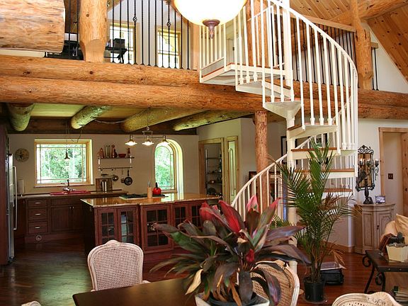 PETERSHAM Ideally situated on over 20 acres of land, this elegant log home boasts an open floor plan that will captivate you with its cherry floors, stone fireplace, spiral staircase that draws your eye to the loft,and kitchen complimented by granite countertops, solid oak cabinets, and stainless steel appliances. This home was constructed from the highest quality white pine timbers?most of which were harvested locally.Outside, you'll enjoy the jacuzzi tub custom installed on the mahogoney front deck. $429,900