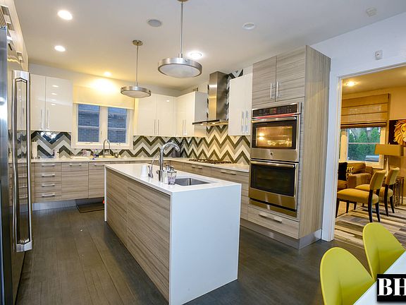 MANHATTAN BEACH 1 family detached stone & stucco 5 bedroom, 3 1/2 baths + 4 bedrooms in basement with 9' ceilings. Radiant heated floors in basement & first floor. Spacious kitchen with granite counters and tile back splash. Double California Closets in all bedrooms. Master bedroom has full bath, walk in closet and stairs to 3rd floor office and bonus room. Lots of storage space, gut renovated in 2015. Top of the line interior and stone & stucco exterior over solid brick. Decked yard off the family room. 3 zone Gas heat, 2 zone central air, garage, private drive.....$2,350,000.