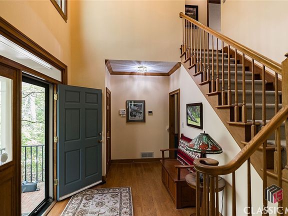Amazing home tucked away in a beautiful, wooded setting on a flowing creek. Relax on the oversized screen porch listening to the water and birds. Meander through the property on trails or play in the garden with dozens of mature blueberry bushes. When it is too cold to be outside snuggle by the fire in the great room with endless windows giving you the feel of being in a treehouse. Bring your bounty in from the garden to the gourmet kitchen with a large island, quartz counter tops, double ovens, induction cooktop and even a marble pastry counter. Stay healthy and rejuvenated in the infrared sauna or soak in the spa tub. This home has it all you absolutely must visit this 11 acre property and fall in love!