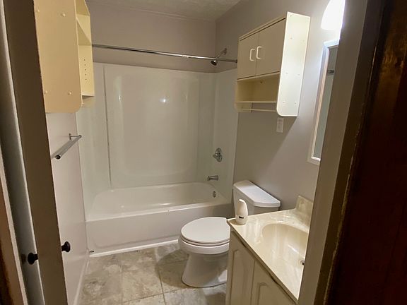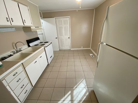 One half of a duplex with ample parking (2 vehicles) behind the house. Covered back porch and uncovered front porch. Gas heat/air conditioning. Utility room for a washer and dryer.