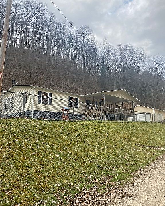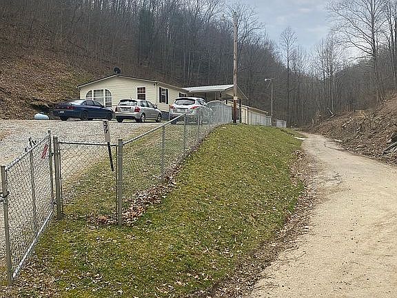 Three separate fenced in areas around the house giant parking area out front graveled and large parking area paved/cemented