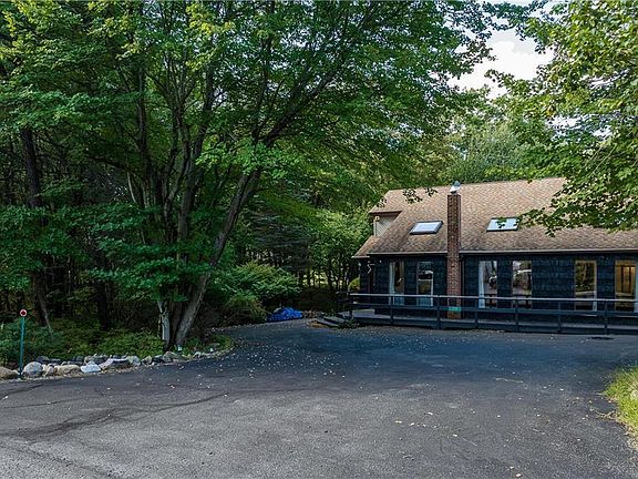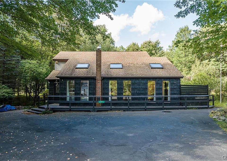 Proven successful short term rental! Records available! Radiating serenity, this 3 bed, 2 bath contemporary Emerald Lakes chalet is surrounded by over half an acre of private wooded land and nature! Entering the foyer, you'll be led into the bright & airy living room with a wood-burning fireplace- a perfect space to unwind! You'll be pleased with the open layout of the living room leading effortlessly to the dining room to gather around the table. Showcase your cooking skills in the gourmet kitchen, dazzled with retro tile floor, wood countertops, center island, breakfast bar area, stainless steel appliances & more! A bedroom remains on the first floor for convenience, with sliding doors to a bonus area leading to the deck/hot tub. A full bath, utility/laundry room and bonus room for your recreation complete the main floor. Nestled upstairs, you'll find two spacious bedrooms, and a second full bath! An outdoor oasis is waiting for you, with a large wrap around deck, four-season fully enclosed sunroom, outdoor firepit and breathtaking scenery- a true retreat! Close to Routes 380 & 80, minutes from Kalahari Resort, Camelback Ski Resort, Golf Courses, Parks, Lakes & much more! This one of a kind home won't last long!