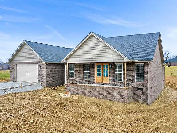The spacious master suite boasting an ensuite bathroom with double vanities, a relaxing soaking tub, and a separate 5-foot shower. Step outside to your covered front porch or unwind on the concrete back patio while taking in breathtaking country views of Kentucky, surrounded by serene farmland. With a convenient 2-car attached garage, this home perfectly combines modern living with rural charm—schedule your showing today! Under construction.owner/agent