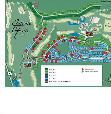 Juliette Falls is a surprisingly affordable and luxurious 546 acre Gated Golf Community with 136 acres of dedicated nature preserve nestled perfectly between Crystal River and Ocala in beautiful Dunnellon, Florida. This beautiful gated community has been designed around what has been ranked one of the top ten golf courses in the nation by Golf magazine. You will be captivated with this beautiful Audubon recognized community from the lush gated entrance to the luxury homes and premier golf course facilities. The golf lover in you will marvel at this John Sanford designed course and its 10 acre practice facility in one of the most beautifully designed communities you will find. Juliette Falls is a great place to golf, but an even better place to live.
