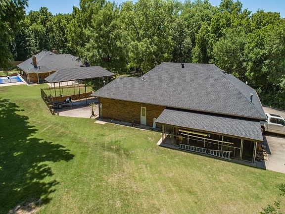 Look no further for your spacious dream home with acreage, shop, storage, and pool. 4392 SF (m.o.l.) home has 5 beds, 5 baths, 4 LA's, 3 fireplaces and hardwoods. 2505 SF (m.o.l.) shop building has sink, toilet, att. garage with 3 single and one double garage door, shelving and upstairs storage. Also on property is paved carport with electric, water, and septic hookups for 5th wheel/motor home. Home has 3 H/A units, storm shelter, Generac generator and sits on 2.43 (m.o.l.) acres at the end of a cul-de-sac.