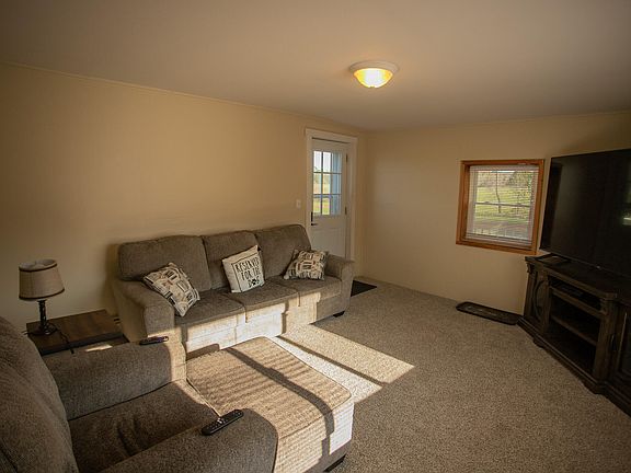 Welcome to this updated 3-bedroom, 1-bath farmhouse. Step onto the inviting covered porch and enter a spacious first floor featuring a bright kitchen, a cozy living area, a dining space, and a primary bedroom, all adorned with fresh paint and new carpet. The full bath includes a convenient stackable laundry area for your ease. Upstairs, you'll find two additional bedrooms, providing plenty of space for family or guests. Recent updates include a new furnace, all-new windows and exterior doors, vinyl siding, and a newly fenced backyard, ideal for outdoor gatherings or gardening. A detached one-car garage adds to the convenience of this lovely property. Situated on a generous 1.71 acres with low taxes, this farmhouse offers both privacy and the convenience of a quick commute to Bangor. Don't miss the chance to make this charming home your own!