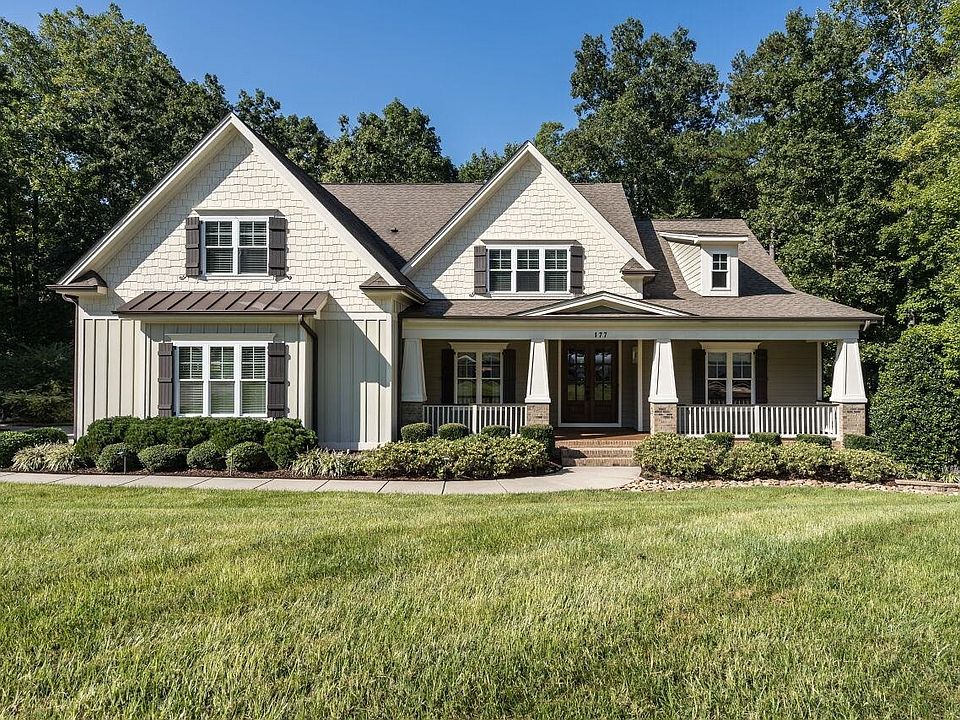 ENCHANTING BASEMENT HOME in desirable & gated Pineville West! 5 BDR/5 BA with 5380sf has it all including Media, Bonus, & Recreation Rooms, Office/Gym & additional heated 677sf Workshop! Special Attractions include: Modern farmhouse styling • Huge southern Front Porch • Gorgeous detailing everywhere • Family Room w/fabulous stone fireplace • Amazing Chef's Kitchen has grand Island, gas cooktop, porcelain farmhouse sink, vegetable sink on island, wine cooler, Pottery Barn fixtures and more.... • Owners Retreat w/Spa Bath & designer closet • Upstairs has 3 Bedrooms, 2 Baths plus a Bonus Room, Media Room & Storage • Basement has Recreation Room, Gym or Office area, Bathroom & heated Workshop • Central Vacuum • Enjoy private outdoor living on vaulted Screen Porch, Deck & 2 Patios with delightful wooded view! Shows like new!