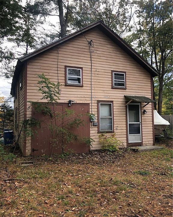 This seasonal cabin is a fixer upper with lake frontage on Goodyear lake. There are 3 Bedrooms, 1 bath with living room, dining room and kitchenette. Septic is unknown. Shallow well. House needs a new roof (it is currently leaking). House sits on piers. There is a shared driveway.
