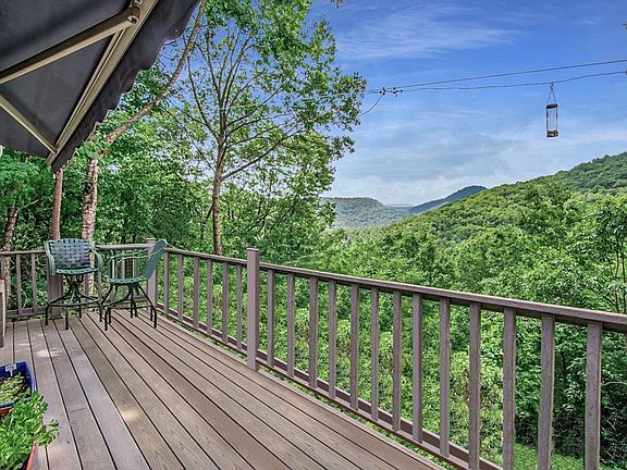 You'll love the amazing views and privacy of this 3 Bedroom 2 Bath home with bonus glass-enclosed sunroom, making it feel more like 1950+/- Sq Ft of living space. The long range southeastern vista and western views of nearby Albert Mountain are truly breathtaking and peace-giving. This raised ranch offers main level living with all bedrooms, baths, kitchen, living, laundry, and home office. The living room has a brick wood-burning fireplace with gas line. The open-flowing plan leads you into the dining which opens up to the enclosed sunroom. The kitchen features granite countertops and updated Thomasville wood cabinetry. Located in the lovely Heritage Mountain Estates and paved to the door and the single-car garage. High-Speed Optimum cable internet is run to the house. You'll also love the walk in basement with workshop area, enclosed storage room and lots of space. Other features include: Generator hookup, Private Well, 2000+/- Sq Ft fenced yard, Garden space, and Greenhouse with rain barrel collection. Updates include: 2020 Home Shingles, 2016 Garage Shingles, Plumbing replaced with PEX 2018, Sunroom enclosure 2022, Mini-split heat/air 2015 & 2021, and added insulation in 2019.