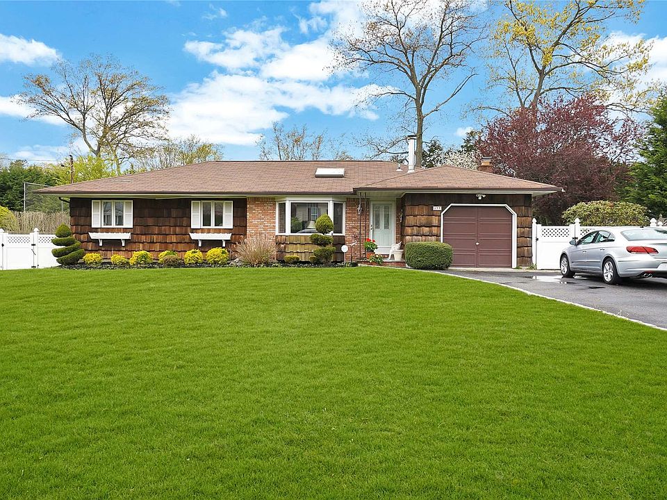 Lovely Ranch with Great Curb appeal on level .31acre Fenced Yard with In-Ground Pool. Home Features Formal LR, Formal DR, EIK, Family Room w/Fireplace, Powder Room, Full Basement, Garage, 3 Bedrooms, Family Bath, Hardwood floors, CAC System, Update Burner, updated 200 AMPS Electric, Updated Windows Thru-out, BB Expanded Driveway plus Paver Apron, Deck does need some work, Sachem Schools, star taxes-$9,930