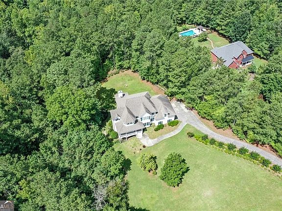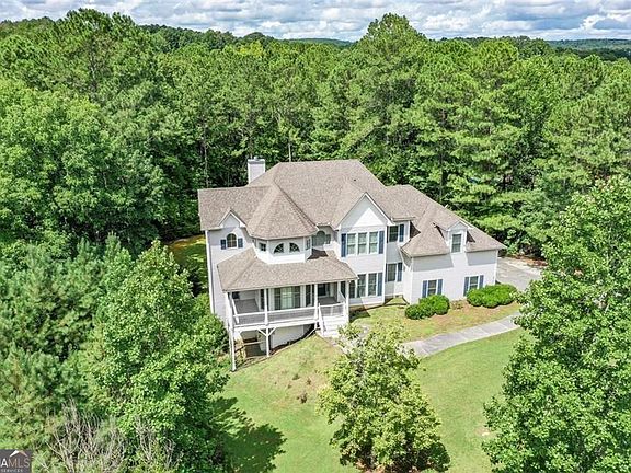 Southern charm meets modern living! This 4-bedroom, 3 full/2 half bath home on 4.3+ private acres offers wraparound covered porches, timeless curb appeal, and a thoughtful floor plan designed for comfort and style. Inside, hardwood floors flow from the foyer to a formal dining room and a flex room with custom moldings. The living room features a cozy fireplace with a wood shiplap accent wall, opening to a gourmet kitchen with granite countertops, stainless steel appliances, tile floors, tile backsplash, walk-in pantry, raised bar seating, and a gas range. A bay-window breakfast nook overlooks the backyard, and French doors lead to an expansive back deck. The mudroom off the 3-car garage includes a custom bench, built-in storage, and utility sink. Upstairs, the primary suite boasts a fireplace, private balcony, huge walk-in closet, and a spa-style bath with French doors, double vanities, a garden tub, and a double-headed custom tile shower. Two bedrooms share a Jack-and-Jill bath, and the fourth bedroom is an expansive, versatile space-perfect for a media room, playroom, home gym, or retreat. The full, partially finished basement is stubbed for a bath with a sink and commode already in place, plus a boat door, utility sink, and space ideal for a workshop or boat/golf cart parking. From here, step out to the covered terrace-level patio and fenced backyard. Privacy, versatility, and Southern style await-prime location with nearby conveniences.