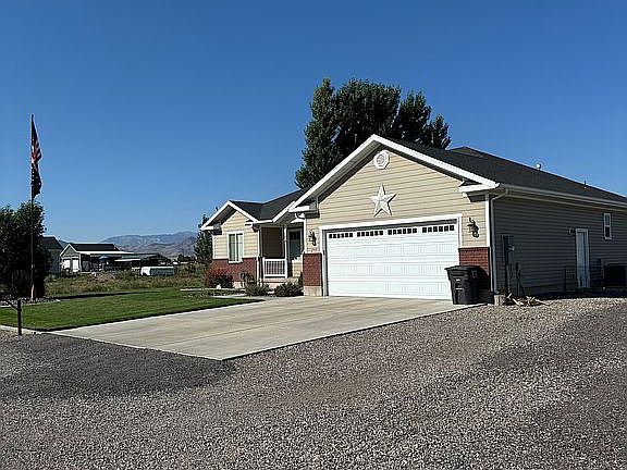 This lovely home is situated in a wonderful neighborhood, offering a picturesque view of the mountains from the main living and dining areas. The main living area features beautiful hardwood floors, while the bathrooms are adorned with elegant travertine tile. Step outside onto the covered deck, conveniently located near the dining room, and further relax on the patio equipped with a cozy fire pit. The property also boasts a garden space and a well-maintained yard, complete with an automated sprinkler system. A 12x16-foot shed is located in the backyard near the garden, surrounded by mature trees.