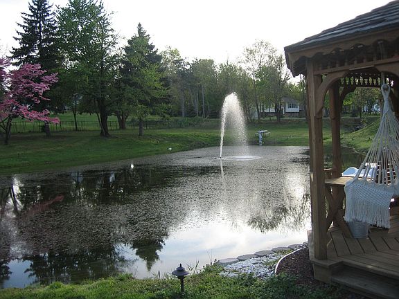 One acre lot with small private lake stocked with hundreds of goldfish, koi and native fish. Stamped concrete patio, dog doors with vinyl dog run, full length front porch, natural stone front, garage is insulated, drywalled and painted. A lot of extras included with sale, 14 foot gazebo, large cedar and redwood children's playset, riding mower, home gym, pool table with ping pong top, fooseball and air hockey table. Also included for the pond is a peddle boat and boat dock. Will pay 2% buyer agent commission