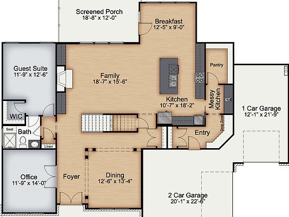 Luxury and country living come together seamlessly in The Morehead, an exclusive floor plan from New Home Inc. We designed every inch of this 5.030-square-foot home to provide the comfort and convenience that contributes to better living. The Morehead invites you with an full front porch.Step inside to the open concept floor plan, giving you a view through the main level. Picture the natural light streaming into the family room, kitchen, cafe, and dining room, infusing warmth and energy. The included gas fireplace adds extra coziness.The kitchen is at the center of activity in the home. We designed The Morehead to answer all of your wish list items. An oversized center island with sink, dishwasher, extra seating, and storage?check. Granite countertops and stainless steel appliances?of course. Let's go beyond the expected to things you might not even know you need. In addition to a walk-in pantry, New Home Inc. includes a service pantry, something we call a "messy kitchen". Use it for storage, add a sink for a clean-up space that keeps the messes out of sight, or create a dedicated beverage station.Are you working from home? The Morehead has a spacious home office off the foyer, enclosed with French doors.A first-floor guest suite is a benefit that many homeowners value. Whether you use it for a welcome place for visitors or a private living area for a household member, the first-floor guest suite makes it easy to be accommodating.If you want to add a living space for you