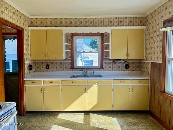 Adorable 1954 Cape nestled on a spacious .34-acre lot in North Adams, MA. This cozy 2-bedroom, 1-bathroom home retains much of its original appeal with lovely finishes, including hardwood floors and vintage fixtures throughout. The property features a bright living area, a quaint eat-in kitchen, and two well-sized bedrooms. Partially finished basement is complete with a nostalgic bar area. A detached 1-car garage provides ample storage and parking. The serene backyard offers plenty of space for gardening, relaxing, or outdoor activities. Located close to downtown Williamstown, cultural attractions, and outdoor recreation, this home is a perfect blend of charm, originality, and convenience. Don't miss the opportunity to make it your own!
