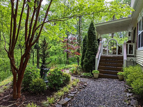 Majestic mountain home with easy access, total privacy, amazing grounds, peaceful soothing sounds of waterfall, and an AIR BNB! Don't miss this one-of-a-kind, immaculately cared for, property... it is simply an incredible find and perhaps just what your buyers may be looking for! Aside from the surrounding pristine gardens and the lovely covered front porch where nature is literally a breath away, there are 3 BR, and 2 Full BA on the main level interior, with a fantastic open feel, high ceilings, and hardwoods galore. The upper area has 2 BR with large primary, 1 Full BA, vaulted living/family room with bright dormer window wells, dine-in kitchen, plentiful storage closets, and...very importantly, both traditional interior and separate private exterior stairway accessibility! This may be that unique property, with the combination of interior space, AIR BNB income, accessibility, privacy, and nature's comforting and healing elements, that checks the majority of the boxes on your buyer's wish list!!!