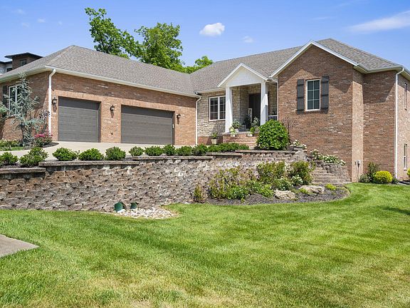 This stunning home combines the clean lines and functionality of contemporary with the warmth and charm of the craftsman design. This home integrates every dream home checklist with a world-class golf lifestyle, proximity to Branson's amenities, breathtaking views, and intentional spacial design and detail. The stately all-brick exterior of the attached 3-car garage frames stone details set behind a gable entry flanked by tapered columns.You're greeted with a breathtaking view as you step inside the foyer. Imposing windows overlooking the living room with tall ceilings and recessed lighting are anchored by the stunning fireplace while the open layout accentuates the home's finest features that integrate the outdoors inside with wide-plank hardwood flooring set below a natural timber beam creating a visual separation of the open flow from the living room to the formal dining area overlooked by a stunning kitchen. The kitchen boasts craftsman cabinets, beautiful quartz countertops, all stainless steel appliances, a gorgeous oversized island with seating and additional storage, and a spacious walk-in pantry. The spacious master suite right off the main living area, an oasis with surrounding views that continue into the master bath with large twin vanities, an immense shower, and a walk-in closet with custom shelves and a window to let in natural lighting. In addition, the 2nd spacious bedroom ensuite with a private full bath is on the main floor. The home office is also included on the main floor living. Downstairs is a sprawling walk-out basement adorned with large windows and sliding glass doors leading to the extensive partially covered patio overlooking the adjoining 4 acre pond view. The space encircles a contemporary wet bar with gorgeous tiled floors leading to the cozy carpeted family area for movies or entertainment. A jack-and-jill bathroom sits between two very spacious bedrooms and an unfinished portion of the basement offers storage.