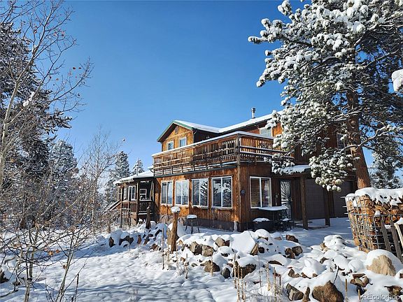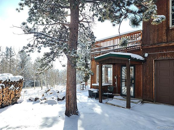 Are you looking to break free from the Rat Race, the traffic, the lines? Here’s your chance! And you don’t have to give up your family and friends either. You're just 25 minutes from the little town of Jefferson and about the same to the little town of Como in the South Park basin. This Colorado country haven sits on 4 ½ stunning, treed, and gently rolling acres, amidst similar parcels, some with houses and many without. This home exudes warmth and versatility, featuring a vaulted and open living room, dining area, and kitchen, all centered around a cozy wood-burning fireplace. Additionally, there are two bedrooms and a full bath on this level, just a half flight up from the main entry/sunroom, the third bedroom and three-quarter bath, and the two-car, attached garage. Just a short half flight down from there, you'll find the perfect cozy gathering spot – a vaulted family room with tongue and groove knotty pine ceilings and accent wall, showcasing the open staircase going up. This large family room enjoys a small, yet efficient wood stove with decorative slate backing AND connects to another sunroom decked out in tongue and groove knotty pine walls and ceiling and a prefinished cherry wood floor. And if all of that isn't enough, whether you have toys, hobbies, or extra cars to accommodate, you'll LOVE the three-car, detached garage located just steps away. A gated circular driveway and extra parking add additional convenience to the total package. With well, septic, and propane, you'll feel almost off the grid, while remaining connected to the electrical supply and, to be prepared for anything, having a large, propane-powered generator that will power the entire house until the propane runs out. Another bonus... multiple cords of firewood, conveniently split and stacked and staying with the house! Don't miss the safe room/provisioner "basement" with tons of shelving and concrete floor walls and ceiling!