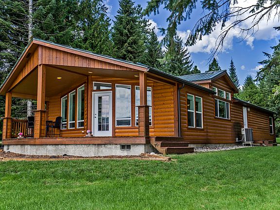 Inviting home on .68 acres with 110ft of private Pend Oreille River frontage. This home consists of 1620sqft, 3 beds, 2 baths, Log and tile accents, and gorgeous custom wood cabinetry and doors. Large windows on the South end of home take advantage of the panoramic views of Pend Oreille River and surrounding mountains from either the Living Room, Kitchen or Dining area. Enjoy entertaining in a large kitchen complete with high-end stainless steel appliances, vaulted ceilings, island, and breakfast bar; all open to the Dining area with access to the covered deck. Spacious master with en-suite bath incorporates the same natural tones, wood, and tile accents seen throughout the home. This stunning property is completed by a detached 28x30, 2 bay garage, separate 12x18 single bay shed, nicely