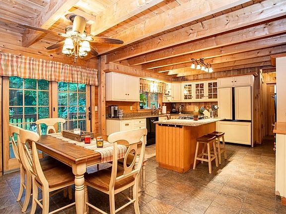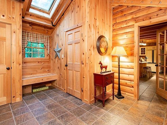 Welcome to your year-round VACATION home. This amazing property has so much to offer - direct access to the Swift River with your own PRIVATE dock where you can kayak, canoe or enjoy trout fishing. This property will also appeal to the equestrians with its 2-horse barn w/ fenced paddock area. The home itself is a Northeastern Log Home with a sprawling front porch where you can relax and watch the wildlife. You will fall in love with this home as soon as you enter. The open concept design and warm wood tones inside will immediately make you feel relaxed and right at home. The high-end kitchen features a dining area, granite counters, an island, gas cooking & stainless steel appliances. The living room boasts a GORGEOUS floor-to-ceiling stone fireplace that will warm you in the winter. An added feature is the main level bonus room which has access to the outdoors. The Geothermal heating/cooling system will allow for energy savings and a whole-house generator will remain w/ the home