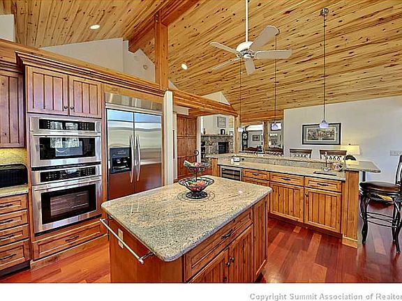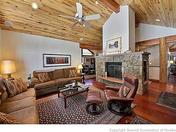 High quality, custom built home w/ 3 BD, 3.5 BA bordering open space in a treed setting w/ mountain views. Beautifully designed and finished with Brazilian cherry wood floors, log accents, double sided fireplace & aspen T&G ceilings. Additional features include wet bar in LR, built-in wine cooler, Dumb Waiter and Laundry Chute. Unfinished family room, plumbed for 1/2 bath in lower level.