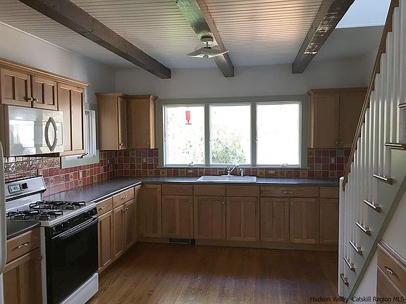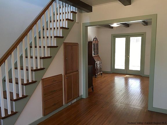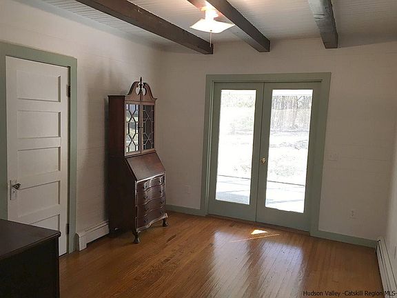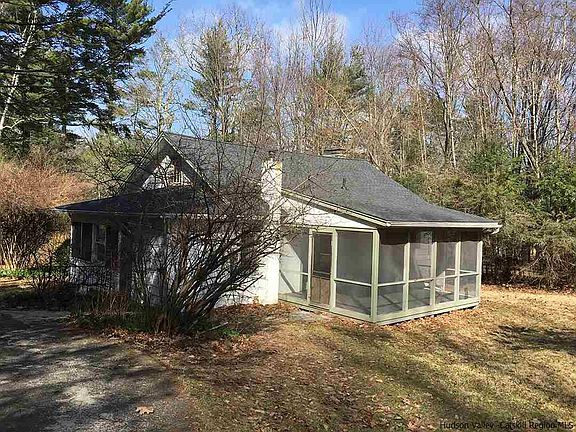2+ bedroom cottage close to Woodstock and near the Hurley Ridge Market. Set back from the street with a large 1-car garage. 2 private acres with stone walls and lots of perennials. Recently refurbished with new floor upstairs, fresh paint; and new washer, dryer and refrigerator. 2 heated porches with lots of windows to let the outside in. Large screened back porch, with privacy, overlooks back yard.