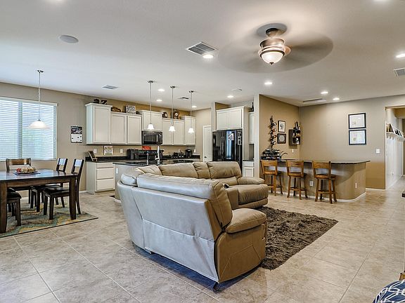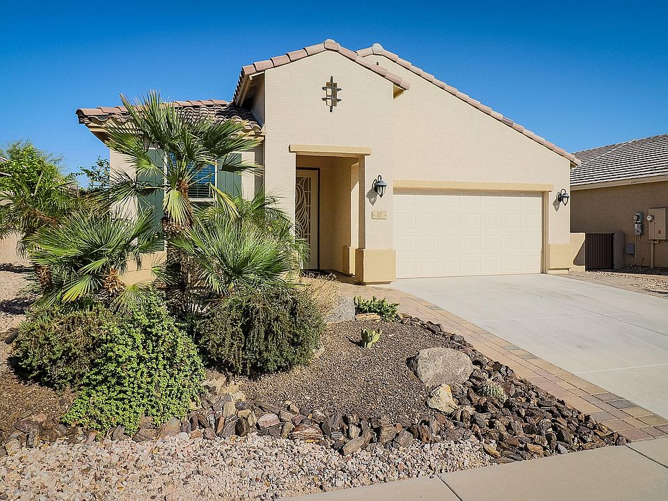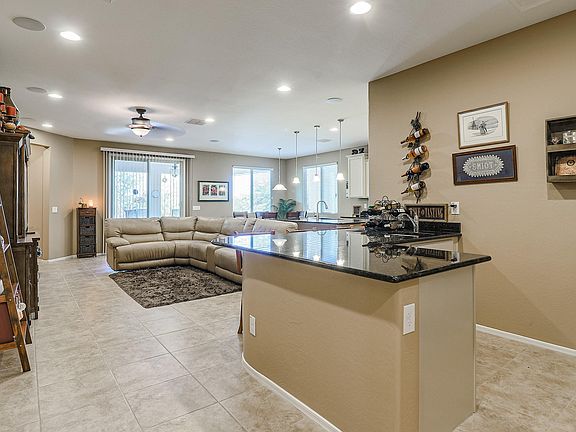 ENTERTAINERS DELIGHT!! This highly appointed GOLF COURSE home is a must see!! Open floor plan with wet bar & wine fridge. Covered patio extends width of home & is surrounded by gorgeous landscaping & golf course. EXTENDED length garage with epoxy garage floor is perfect for oversized toys & extra storage. Additional features include: Staggered antique white cabinets with convenient bank of drawers at kitchen base. Golf Ball Screens on rear windows, surround sound, soft water loop & system.