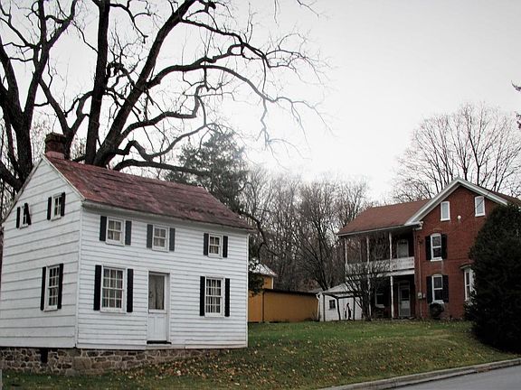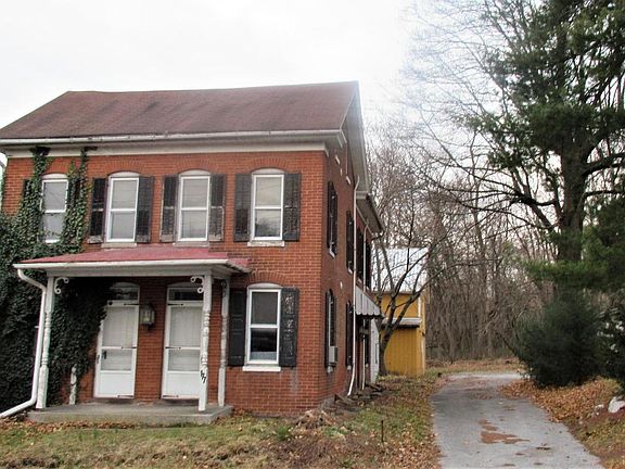 All brick 2 1/2 story home with 3 Bedrooms, 2 Full baths, Large kitchen with Wainscoting, Double doors covering fireplace. Each level has a bathroom. Laundry area in Kitchen. The 2nd level has 3 Bedrooms and a balcony. Basement area is ground with Bradford white electric hot water heater installed in 2019. The paved driveway leads to a vinyl sided 3 car detached garage that's 36' L x 24' D with 3 overhead doors, concrete floor, electric and 2 electric garage doors. There is a 2 story barn 28' x 30' with 20' x 24' addition. Barn is sided with T1-11, has metal rood and electric. There is also a 2 story frame accessory building on the property 16' x 20', has no electric, no plumbing, No sewer or other utilities. It is used as a finished storage house.