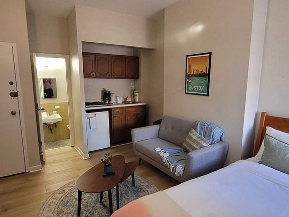 Discover serenity at this charming third-floor studio nestled between the desirable Back Bay and South End neighborhoods. This cozy hideaway offers a private bathroom, mini fridge, oven, cabinets, and closet, all meticulously arranged within its 229 sqft of space. Immerse yourself in the fascinating history of this early 1900s Lodging House while savoring its timeless charm in a central location. The apartment features a unique long hallway and is located at the back of the building, ensuring a super quiet environment. Everything you need and nothing you don't. The apartment is fairly priced and furnished, located in a great area. While the space is compact, the location compensates for it, and once you settle in, you'll find that you don't always need a ton of space. You'll have access to the entire apartment without sharing any space with other guests. We provide basics for cooking, including pots, pans, mugs, cups, dishes, and bowls, but not salt, pepper, or oil. This apartment is located on the southeastern border of the Back Bay neighborhood, bordering the South End and just across Massachusetts Avenue from Northeastern University. The micro-neighborhood is central to restaurants, coffee shops, and bars, yet maintains a safe, quiet residential feel. Enjoy quiet areas for reading, walking a dog, or playing tennis and basketball at the Southwest Corridor Park. Boston is one of the most walkable cities, and this location is ideal, being accessible to top hospitals and offering easy access to restaurants, pubs, bars, coffee shops, and live music nearby. The heating system has one thermostat for the entire apartment building, so you can crack a window if it gets too hot on the upper floors. We have an on-call employee nearby for assistance during normal business hours and a 24/7 guest messaging team for support.
