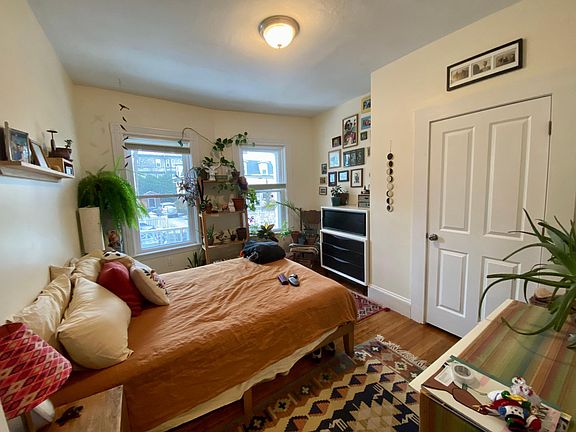 Available 9/1/23. This is a must see! Pet Friendly 3 bed 1 bath with large bedrooms and an even larger living and dining room and if that wasn't enough it is open to the kitchen. The kitchen is large enough for additional storage, an island, or table. It comes with a dishwasher, disposal, granite counters, and the refrigerator has filtered water and ice. The in unit laundry is conveniently located inside a closet right off of the kitchen and living room. The living room is huge and has plenty of space for sectional sofas and a large dining room table. The 3 bedrooms are just down the hall with large closets and plenty of space for any size bed, desk, and a dresser. The bathroom is tiled with a tub and shower. One off street parking included in the back of the house with common outdoor space and an area for a grill. If that wan't enough there is private storage in the basement. Central A/C and front porch.