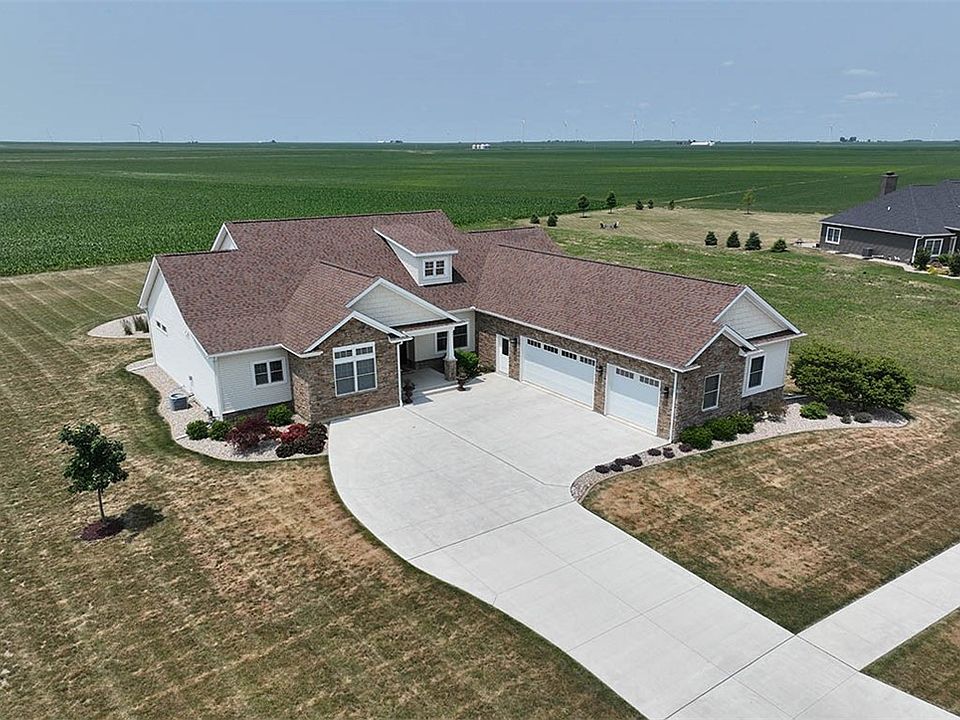 Stunning new ranch home on a large lot in Maroa Forsyth school district! Walk in to the open concept floorplan to the living room with built in bookshelves on each side of the fireplace, cathedral ceilings, beautiful kitchen with large island, breakfast nook, dining room, and awesome view of covered patio overlooking open field to the West! Main floor includes laundry room, 4 bedrooms, and 4 bathrooms. Huge master suite with his and her walk in closets and master bath with heated floors and soak tub. Finished basement with large rec room, wet bar, exercise room, 5th bedroom, 5th bathroom with heated floor, and plenty of unfinished storage space. Dual zone HVAC for basement and main level. Large 3 car garage with utility sink. Home was pre-plumbed for an irrigation system, but irrigation system has not been installed outside.
