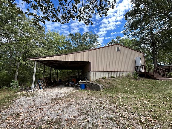 Located on a quiet road with only 5 well-maintained homes, this lovely updated ranch with custom stone and vinyl siding exterior sits on a hill with a view of the lake. It has 2 bedrooms on the main floor and a additional 2 in the lower level. There are 3 full baths, and an eat-in kitchen with an island and built in desk. It has a full walkout basement with a woodburning fireplace and a small kitchen with appliance including the washer & Dryer is fully finished. This would be great for in-laws older children. The oversized 2 car garage (38' x 28') can hold a bass boat & trailer but it also has an overhang in the back for an RV or two more parking spaces. The shop has 2 RV electric hook ups and there is a furnace that is all ready just needs it's own propane tank. This house sits on 2 acres with lots of trees, deer, and turkey. The property backs to the Corps land with a view of Bull Shoals Lake. There are a newer metal roof, newer kitchen appliances, newer flooring, and some newer carpet This has a private well and septic system, and the propane tank is owned and stays with the home.. There's a large deck across the back of the house. with a view of the lake. This is very close to the marina and lake yet still give you some privacy. Seller may consider owner financing depending on the terms, credit and down payment