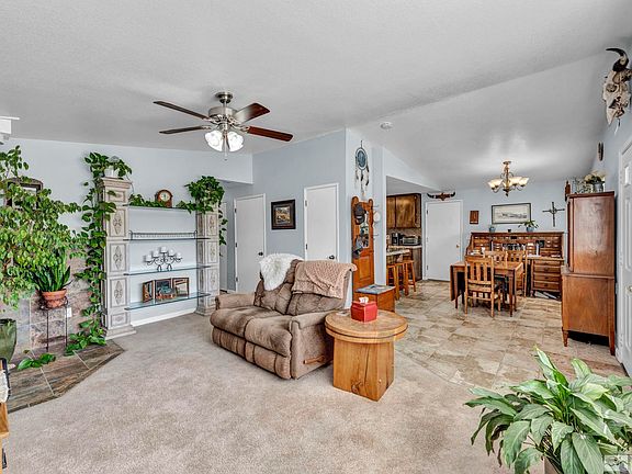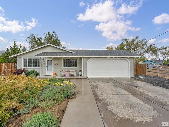 Beautiful home on over 1/2 acre!!! This home has been upgraded throughout and boasts a huge backyard with plenty of room for RV's, toys, etc. and wonderful mountain views! The home features vaulted ceilings, upgraded kitchen & bathrooms, new water heater, newer windows & finished garage! Gorgeous kitchen has granite tile countertops, tile flooring & backsplash, skylight and pantry! Wood-burning stove (not currently in living room) can easily be reinstalled if buyer chooses! Zoned for horses! Must see!, IMPROVEMENTS/UPGRADES COMPLETED INCLUDE: - Installed new Rheem Performance 40-gallon gas water heater: June 2024; - Installed new double-pane, vinyl frame, Low-E windows with grids: 2017; - Fully insulated and finished & painted garage, insulated with R-30 (ceiling), R-14 (walls) and R-10 (garage door), installed new window, installed fire-rated attic access door and added extra lighting and outlets: 2022; - Installed new tile throughout including flooring, countertops, backsplash, tub/shower surrounds and hearth for wood-burning stove: approx. 2016 (by previous owner); - Installed new 20’ x 12’ storage shed with loft, skylight and double sliding doors: 2018; backyard also includes a second storage shed, 14’ x 8’ with window, both sheds painted to match; - Kitchen includes beautiful granite tile countertops, tile flooring, tile backsplash, skylight w/screen to buffer heat & cold transfer (replaced 2019), pantry closet with spice racks on inside of pantry door, breakfast bar, Kenmore Elite refrigerator, GE gas range with 5 burners including center grill, self-cleaning, GE Profile built-in microwave w/light & vent and GE dishwasher; - Both bathrooms include beautiful tile countertops, tile flooring, bathtub/shower combination with tile shower surrounds; - Beautifully landscaped front yard with flower beds on both automatic drip and sprinkler system (sprinklers surround flower bed), front covered patio, fenced-in yard, large concrete driveway plus extra room on both sides with gravel, RV gate and access to backyard; - Spacious backyard features a concrete patio and paver patio & walk-way, 2 storage sheds, chicken coop, trees and bushes, weed barrier landscape fabric put under rock & paver areas in back, topsoil and compost added to soil, underground tube at back corner of house for electric cord and hose to RV, beautiful mountain views and plenty of room for RV’s, toys, horses, etc. - Newer Whirlpool high efficiency washer & dryer; - Ceiling fans w/lights installed in all 3 bedrooms and living room; - Whirlpool water softener model #WHES20: only recharges when necessary, saving salt and water; control display features include demand initiated regeneration, water flow indicator and low salt indicator; and space saving single tank design; - Installed vapor barrier in crawlspace; - Wood-burning stove Heat-Pro C210 – catalytic wood stove with a catalytic combustor; - Refrigerator and washer & dryer stay! - Chicken coop can stay if buyer would like!