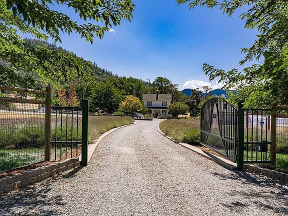 APPLEGATE FARMS! Tremendous opportunity to own an iconic property smack dab in the middle of wine country Applegate Oregon! This rolling 65+ acres features Slagle Creek running thru the property, a pond, irrigation rights (per seller), and BLM to the South perimeter. The farmhouse is a classic 2 story farmhouse which has been fashioned and updated totally to match the originally built 1890s charm. The setting is fabulous sitting behind gates with a front porch and rear porch located on the creek with fenced gardens and an orchard, there is also a large shop and 2 beautifully restored barns. The views from this property take in the entire Applegate Valley looking south and west as well as a view of the lower pond. You will not find another one like this. Don't wait to come take a look. Buyer to do own due diligence.