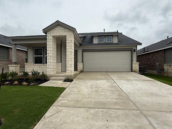 This BRAND NEW single-story home is perfect for those who value space and comfort, featuring 4 bedrooms and 3 bathrooms. There are three bedrooms at the front of the home and an owner's suite at the back with a full bathroom. The open-concept floor plan includes a large covered patio with a fresh new paint scent. Whisper is a master-planned community offering a collection of new homes for sale, complete with solar technology and easy access to exciting amenities. The community provides a laid-back, rural environment, located directly between Austin and San Antonio. Additionally, residents have access to a variety of outdoor activities just minutes away, such as recreation at Five Mile Dam Park, the San Marcos River, Wonder World Park, and Purgatory Creek Nature Area. Fridge, washer, and dryer are INCLUDED.
