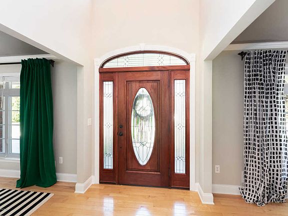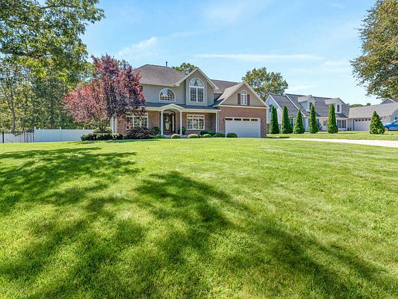 Beautifully updated 4 bed colonial w/ 2 full & 2 half baths sitting on over 1/2 acre of property backing to the woods! Great curb appeal & professional landscaping w/ fenced backyard & plenty of room for pool and play area! Oversized concrete drive and 2 car extra deep garage. Enter through the leaded glass door with transom into 2 story foyer. Flanking the foyer are formal living room (being used as an office)& formal dining room, both with lots of light. Hardwood floors throughout most of 1st floor. Huge eat-in kitchen w/ new black stainless appliances (less than a year old) and corian counters leads to sunroom and bright 2-story family room with gas fireplace. Perfect layout for entertaining! Large laundry room & newly renovated powder room on 1st floor.Finished basement w/ half bath.