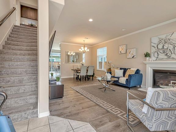 Welcome to Maple Park, a 4-year luxury living gated community! This incredible home includes exclusive premium features, such as a *2x6 perimeter foundation*well insulated ceiling & exterior walls *tankless water heater. Upon arrival you are greeted with an inviting porch, as you enter the great room, you will be impressed how beautiful the fireplace, seating area, formal dining area flow throughout, this is the ideal spot to congregate with family & guest. The vinyl plank flooring gives it a modern touch. The Gourmet kitchen boasts stainless steel appliances, a central island with tasteful quartz countertops and glass-tile back splash & breakfast nook. The second level has upstairs laundry room with cabinetry and quartz countertops. The Primary bedroom is spacious inside. The ensuite has double sink vanity with quartz counters and glass tile backsplash, stall shower has a quartz slab, walk in closet, plus a 8x20 attic. The backyard is low maintenance & garage has EV-220 Volt charging.