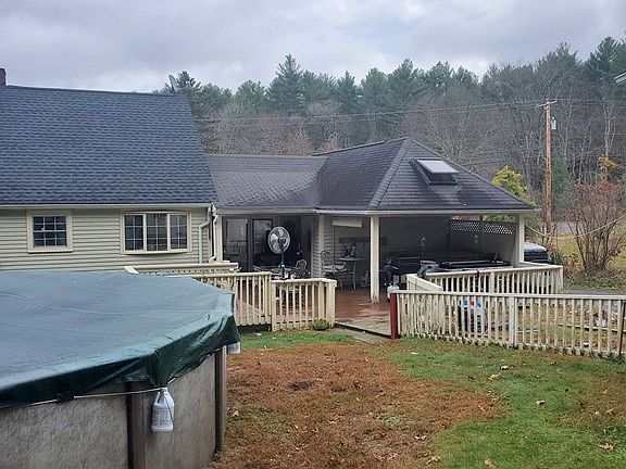 Three bedroom Cape (could potentially be 4) located in picturesque Monson! Eat in kitchen, hardwood floors. Newer roof, siding, septic about 2 years old APO. Large open, covered deck with hot tub and a above ground pool with fenced back yard making it perfect for entertaining. Looking for an oversized garage with workshop? This could be the one for you. This detached garage it has its own heat, electrical, engine lift, lighting and storage. The home could use some updating to make it yours. 24 hour notice please.
