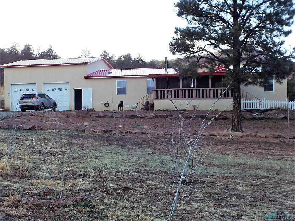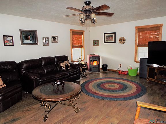 Come take a look at this beautiful country property. Approximately 2,071 square foot stucco mobile home on a permanent foundation sits on beautiful 16.43-acre ranch. The home features three bedrooms, two baths and a large yet cozy sunken family room addition with a pellet stove. A fourth room serves as a separate study/office or crafting room. Formal dining and living areas and an eat-in kitchen nook. Kitchen provides a large built-in cupboard for dishes and a pantry. Laminate flooring, vaulted ceilings, and a wood stove for those chilly nights. Solid pine interior doors and trim throughout the home. Attached oversized two car garage with electric garage doors, a loft, workshop and a large additional pantry for storage. Large screened in front porch perfect for relaxing and taking in the beautiful scenery and serene sunsets. Hay and horse barns, approximately 5 acres fenced in pasture. Short drive to the historic town of Las Vegas NM, Sipapu Ski resort, Pendaries Golf Resort. Shown