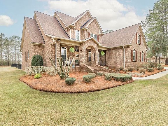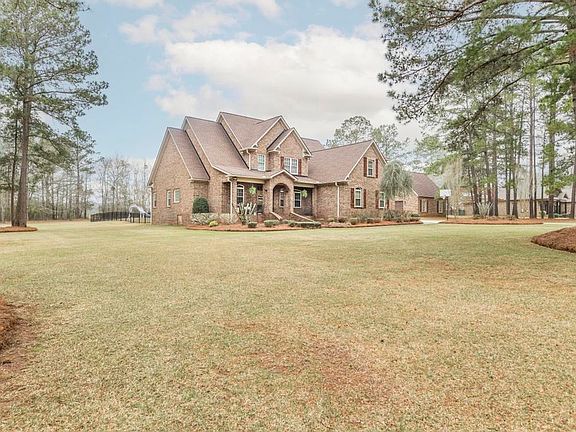 WELCOME HOME! ALL BRICK HOME on 2.4 Acres Front foyer w/ formal living room/office and closing French Doors. In the Living Room to the left, a partial bathroom & Primary Bedroom to the rt featuring coved trey ceiling. Accommodates large furniture & cozy seating space. Newly updated ensuite bathroom boasts luxury tiled shower, paint, LVP flooring, granite counter tops, new light & faucet fixtures, floor mounted free standing soaking tub and fixture, counter to ceiling cabinet between the dual sinks, built in bookcase nook, comfort height toilet. Large walk-in closet. Lliving room featuring COUFFERED CEILING w/ French Doors opening to a covered back patio. Additional patio perfect for outdoor dining. Stepping stones create a path to the INGROUND salt water POOL (new liner) with wrought Iron FENCE gazing the beautiful sunsets. Back yard visitors too! Let's go back through the living room and into the breakfast room, kitchen, & dining room accented with judges panel detail. The Kitchen is a cook's delight with double ovens, island with a sink overlooking the backyard, drawers, and seating. The layout of these 4 rooms has an open concept and excellent for entertaining too! The 2nd bedroom is located downstairs. Bathroom 2 features dual sink vanity along w/ a built-in linen cabinet & updated tiled shower. As we go upstairs, we find the UPDATED 3rd bathroom featuring walk in tiled shower, dual sink vanity with granite countertops, linen cabinet along with 4 guest rooms that offer various options. 3 rooms have walk-in closets. The LARGE 6th bedroom could function as a bonus room/2nd living room. There is a closet and windows too! A little nook creates varied uses. Hardwood & tiled floors. Well for pool & outdoor use. Houston County Public water for the home. 3rd Garage for storage & covered lean-to for extra parking. Other owner updates- interior & exterior light fixtures. Interior painted with neutral colors throughout.