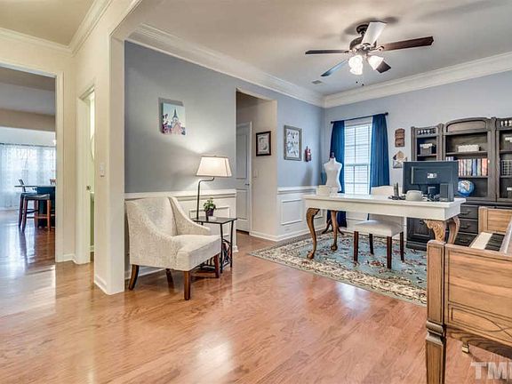 A Great Entertainer featuring large Family Rm w/ gas fireplace, Morning Rm w/ breakfast bar & Gourmet Granite Island, stainless Kitchen w/ amazing cabinet storage. Patio, private fenced backyard w/ play-set & raised garden beds. Formal DR & LR w/ French doors & flex rm. 2nd floor features 3 large bedrooms plus loft & an Owner's Suite - luxurious spa bath, designer tile, large shower, soaking tub, 2 large walk-in closets & sitting area. Pool, soccer field, playground, low taxes, easy commute to RTP & UNC.