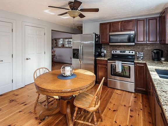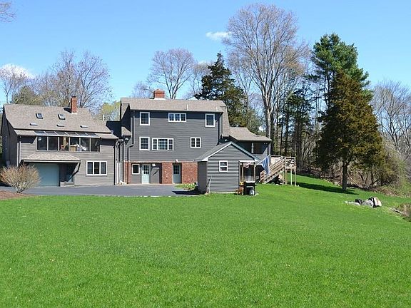 Spacious colonial home on a beautifully manicured 1.39 acres. A perfect family home with many new updates. Kitchen features cherry cabinets, granite countertops, tile backsplash, newer stainless steel appliances and pellet stove. The open floor plan flows from the kitchen into the breakfast area/living room with a fireplace and built in cabinetry. First floor has gleaming wide-pine flooring! Dining room is located just off the kitchen and further down the hall is an office w/ gorgeous woodwork and access to all season sun room which leads to exterior deck overlooking pond. The first floor master is a generous size with plenty of storage. The second floor features a full bath and 2 newly painted bedrooms with brand new carpeting. Hallway has an oversized linen closet & additional bonus room has laundry hook up. Wait there's more-option for first-floor in-law suite or home based business! New stone walkway to farmer's porch. Conveniently located to Rte 95 & MBTA.
