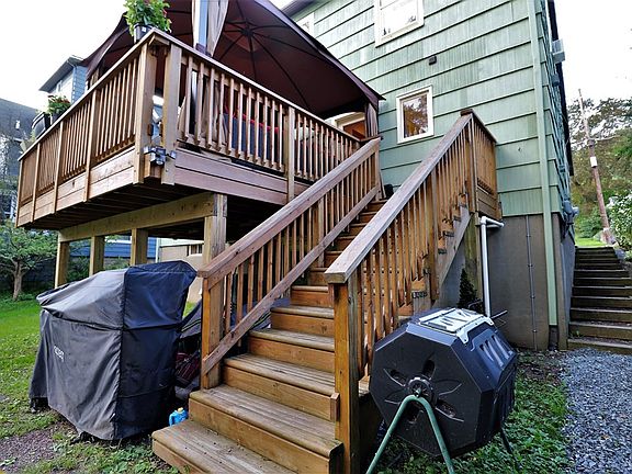 Come see all the changes! Enjoy the view on your open deck, overlooking a park-like setting & alley access. Raised bed gardens already in place for fresh veggies! Inside, you'll find a wonderful open floor-plan w/ hardwood floors throughout, custom solid wood cabinetry in the modern kitchen, granite countertops & a butcher's block island. The first floor also features a newly expanded full bath for convenience (previously 1/2 bath). A walk-out basement w/ a renovated laundry has additional potential for an office or den. Walking distance from Downtown Corning's Market Street & Museum of Glass!