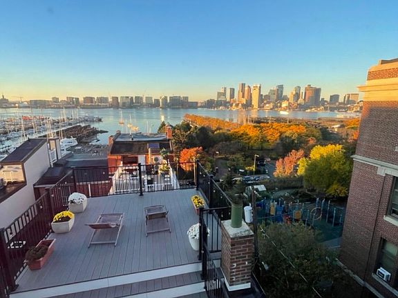 Duplex condo unit with unmatched water-view roof deck in a historic Webster Street Bow Front Brownstone in East Boston's Jeffries Point neighborhood. Charm meets modern functionality, topped by an unrestricted, 180-degree harbor view from the oversized deck, alcove, kitchen, and master bedroom. 2023 gut-renovated kitchen with stainless steel appliances, soapstone countertops, cafe-inspired tile backsplash, and thoughtful cabinetry for storage. 2022 gut-renovated master bathroom with oversized in-unit W/D, pedestal sink, and radiant underfloor heat. 2021 half bath with Carrera marble. Two additional bedrooms (updated 2023) and an alcove provide plentiful room and home-office opportunities. One ornamental fire place and a wall-length built-in for storage. Located diagonally across the street from beautiful Brophy Park, this unit is also just steps from the amazing views of Piers Park, only an 8 minute walk to Maverick T Station, 5 minute walk to Tall Ship, and 10 minute walk to Logan. NO BROKER FEE! Owner pays for water/hot water, master insurance. Tenant pays for heat, electricity, and internet. 12 month term. 1st/security required at signing. Subject to tenant background check + credit check. No Pets, no smoking. Street parking. Quiet building. Available for showings starting 9 June after meeting with owner.
