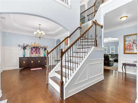 • Bookcases, Built-in Features, Bathtub, Tray Ceiling(s), Ceiling Fan(s), Dual Sinks, Entrance Foyer, Fireplace, Granite Counters, Garden Tub/Roman Tub, High Ceilings, Bath in Primary Bedroom, Pull Down Attic Stairs, Sitting Area in Primary, Smooth Ceilings, Solid Surface Counters, Separate Shower, Cable TV, Upper Level Primary, Vaulted Ceiling(s), Walk-In Closet(s)