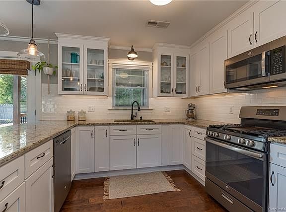 Wishing for a newly constructed home in Forest City but can't find one? This fully renovated home is the next best thing! Owners totally gutted this and remodeled inside and out in a elegant & unique style of modern farmhouse meets mid-century modern. Open floor plan w/ample space for entertaining in the living/dining area and rich wood floors throughout. Kitchen has lovely granite tops w/white shaker cabinets to the ceiling & GE Profile Slate appliances. Master bedroom accommodates a king and bath is huge w/wood look plank tile floor & tub surround. Double bowl vanity in the master bath and the gorgeous teal cabinetry in the hall bath both have marble tops. Additional bedrooms are cute as a button and the laundry is so adorable, you'll look forward to washing clothes! Out back, the charm continues with deck & in ground pool. Liner, sand & filter all recently replaced. A Move-In Ready MUST SEE!