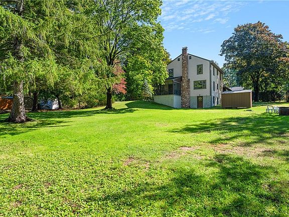 One owner custom-built 2 Story Colonial. This inspired home was built by a master craftsman whose beautiful work and attention to detail can be found throughout. This lovely home has been well maintained and cared by family. Home offers 2648 square feet of living space, 9 room, 2 1/2 baths. Enter into a beautiful front foyer with center stairs. The 27' x 15' living room sits front to back and has a simple colonial style woodburning fireplace, built in bookcases and rough-hewn wood beaming ceiling. This room leads to a screened in porch overlooking a lovely yard. There is a formal half paneled dining room with a built-in hutch leading into a wood paneled large eat in kitchen with plenty of cupboards. Also on this level is a good size den which can also be entered from the 2-car garage and steps onto the back porch. Nice, titled half bath and plenty of closets. Second level has 4 good size bedrooms, master has private full bath as well as common full bath. Ample closets and pull downstairs to access attic storage and whole house fan. Hardwood floors flow through first and second floor of the house. The finished lower level has a full wet bar, built in desks and seating. There is also a sewing station or craft area. An office, cedar closet, lots of additional closets, storage and a large workshop. House sits perfect down long driveway to a beautiful acre of land nicely landscaped. This is a very solid beautiful home is freshly painted, updated windows, roof, more!