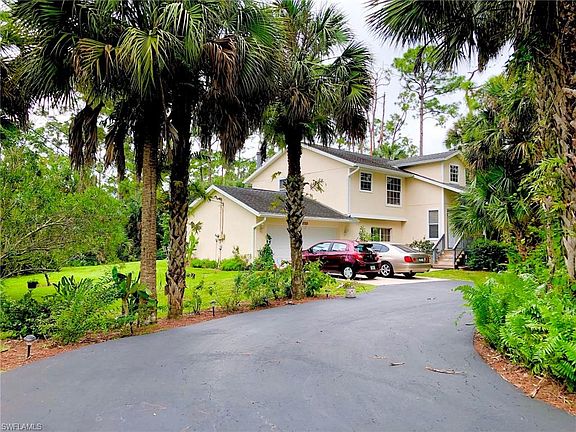 LOCATION LOCATION LOCATION. Close to White Blvd and Pine Ridge Rd. 2 story home with 4br and a bonus family room located downstairs. 2 car garage and circular paved driveway. Property sits on 2.5 acres with canal access on the back. Close to schools, Publix, gas station and only short drive to Gulf of Mexico. Upstairs features a very sunny and bright kitchen with breakfast bar and a dining room/living room overlooking the outside deck and garden. Enjoy your morning coffee or late night drinks on your second floor outside deck with a Florida lush landscaping view. Beautiful garden view from your second floor master bedroom which has an ensuite bathroom and sliding doors leading to the outside deck. The first guest bedroom is also located upstairs as well as a small office area. Downstairs you will find an additional two bedrooms where one of them has ensuite bathroom and French doors. Also located downstairs is an entertainment room with a bar, fireplace and screened in patio. Laundry room is located downstairs but it can be also located upstairs.