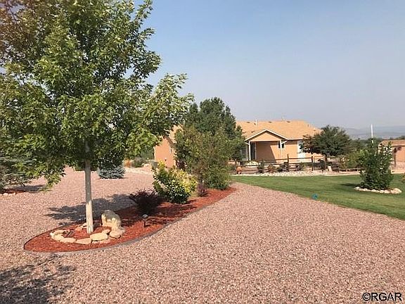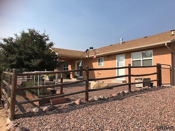 Well maintained ranch home on almost an acre with tons of extras. Peaceful setting with gorgeous views in every direction. Living Room has wood floors and gas log fireplace with seat and tile accents. Formal Dining Room has access to covered back patio. Large Kitchen has tons of cabinet and counter space. Huge Laundry Room that also has storage. Great floor plan. Exterior has several outbuildings being used for storage but one could be converted back to chicken coop. Yard has partial fence and is professionally landscaped and absolutely beautiful including grass, flowering shrubs, trees, flowers and more. Sprinkler system and drip system. 2 car attached garage with door to exterior. Country feel but close to Canon City and Florence.