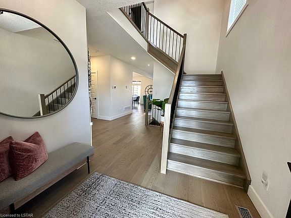 Sits on a PREMIUM LOT... Welcome to 1770 Brunson Way with many many upgrades (list attached)! Located in the Wickerson Hills Community of Byron, London. This beautiful 2-story home and offers open concept design. The main floor features a grand entry with upgraded engineered hardwood, 9ft ceilings and large windows that allow amazing sunlight throughout the house. The kitchen is finished with custom designer cabinetry & quartz countertops, high end appliances and lots of cabinet space. Offers open concept Living, Kitchen& Dining rooms on main level for gatherings. Living room has a beautiful upgraded gas fireplace with tiled accent wall. Main level laundry room is equipped with high end washer and dryer. Also, there is a half bathroom in the main floor with upgraded vanity. On the way up to the second floor youre greeted with a Stained Staircase that leads to 4 large bedrooms and 3 full bathrooms, 2 En-suite baths and 1 shared bathroom serving 2 bedrooms. The master bedroom offers an amazing Ensuite with a custom glass shower and a double sink vanity finished with beautiful counters and tiled accent walls. Master also has a large sized custom walk-in closet. The Additional 3 bedrooms offer nice carpet flooring and large closets with 2 bedrooms having their shared ensuite bath. You are just a short walk away from all the great activities the Boler mountain has to offer!